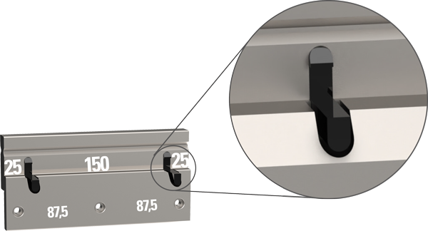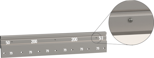 ✔ Punzón superior: 100 (cuerno izquierdo) 25, 25, 30, 35, 40, 45, 50, 100, 100 (cuerno derecho) = 550 mm (conjunto)