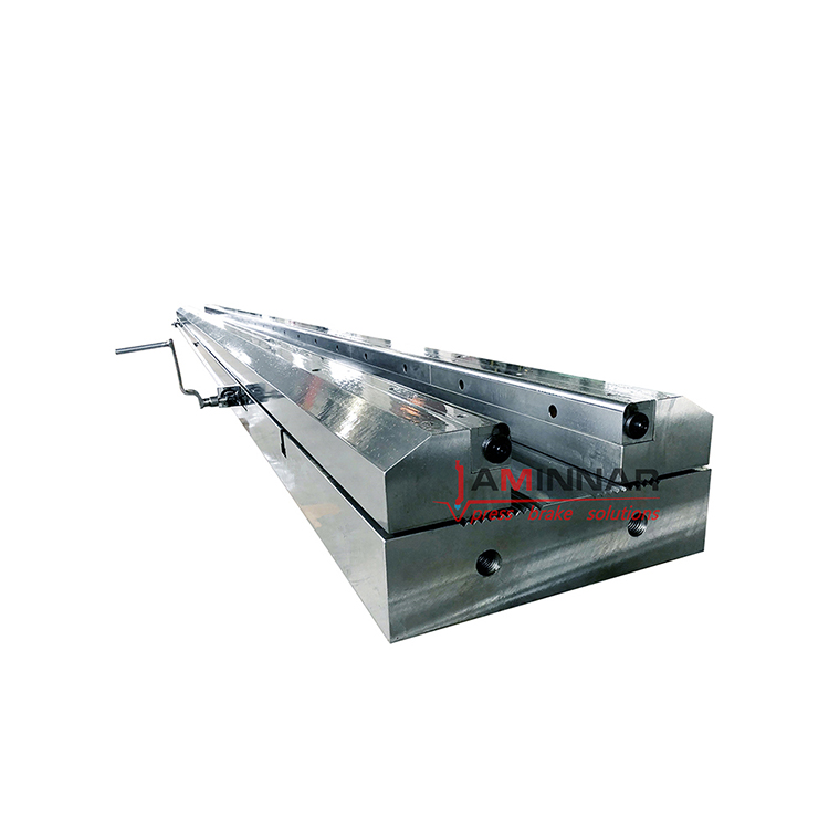 Sistema de matriz ajustable que permite obtener diferentes aberturas en V en la misma prensa plegadora. Gracias a esta modularidad, es posible obtener diferentes radios y ángulos de plegado.